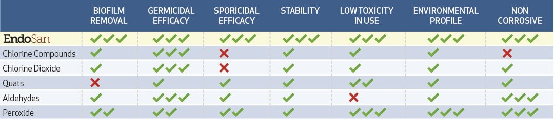 כאשר מוחל כראוי על מים, אוויר או כל משטח אחר Endosan יחטא באמצעות תהליך חמצון וימשיך לספק בבטחה ביצוע שיורי לאורך זמן.